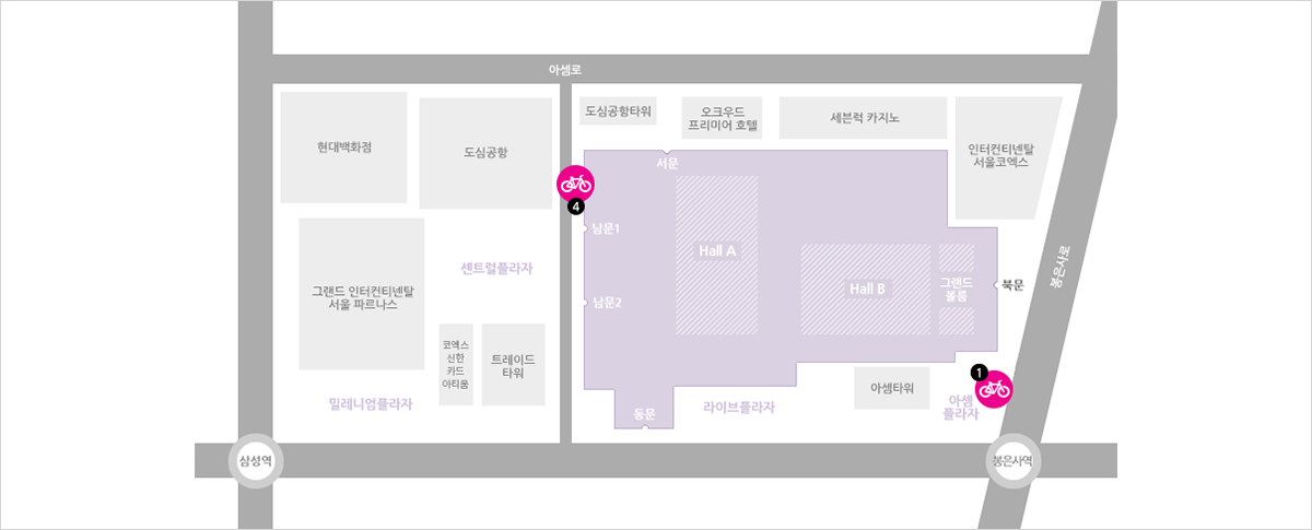 : 남문1 앞 보관소, 아셈타워 후문 앞 보관소 2 곳 운영